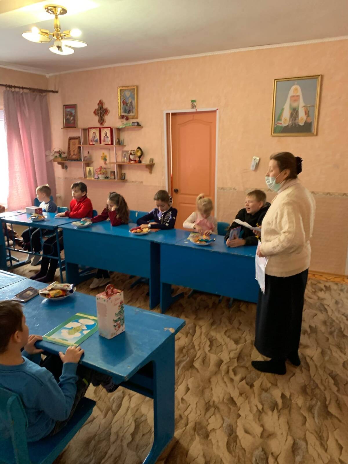 А 8 января, по доброй традиции, состоялся Рождественский вечер для учеников воскресной школы. Дети исполнили Рождественские песнопения и колядки. Всем присутствующим были вручены сладкие подарки, а потом праздник продолжился просмотром мультфильма, чаепитием и салютом.